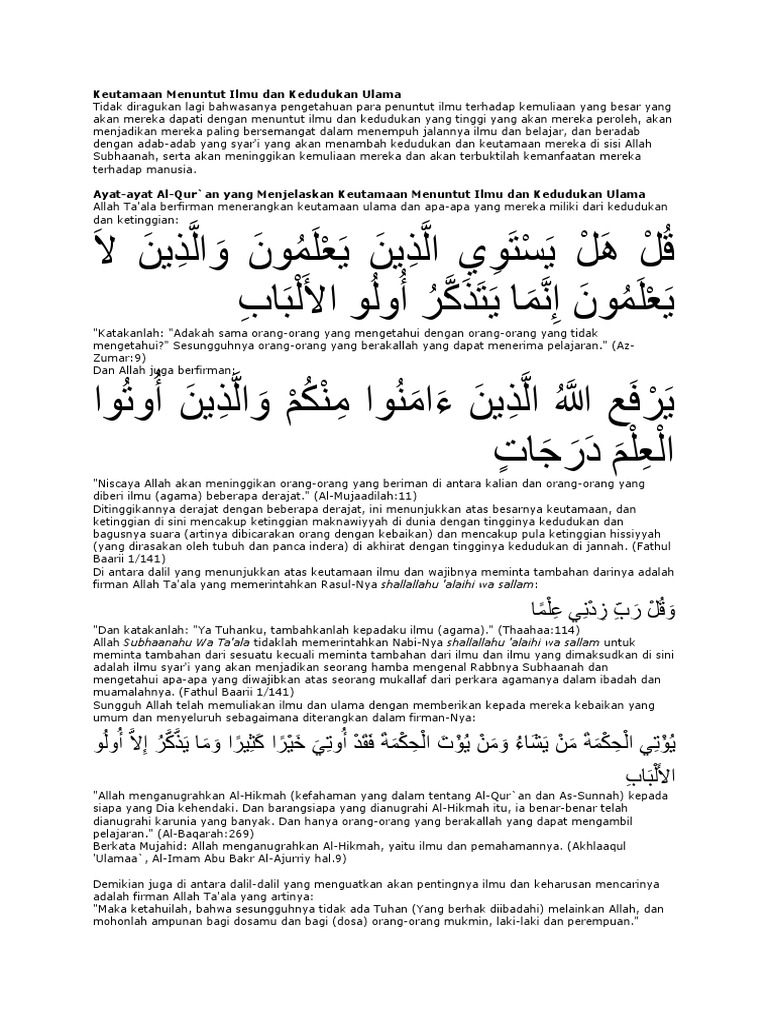 Keutamaan Menuntut Ilmu Dan Kedudukan Ulama