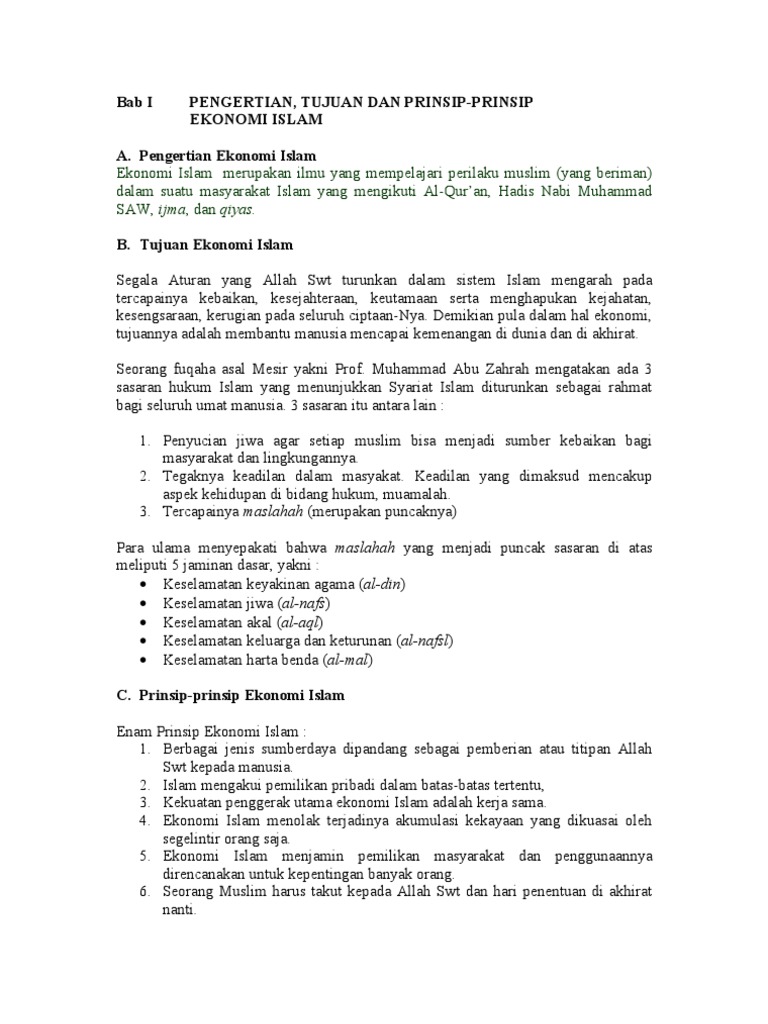 Bab Iii Tujuan Dan Prinsip Prinsip Ekonomi Islam
