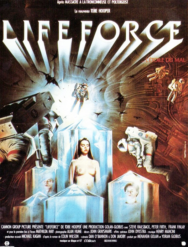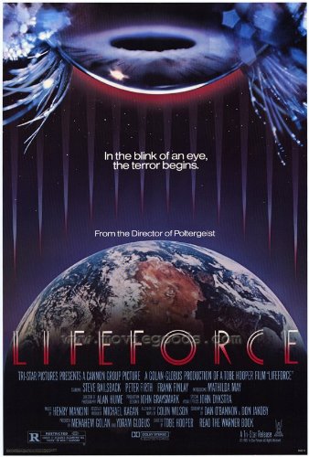 Lifeforce movie poster. Directed by tobe hooper. Lifeforce is a 1985 british science fiction horror film directed by tobe hooper written by dan obannon and don jakoby and starring steve railsback peter firth frank finlay mathilda may and patrick stewartbased on colin wilsons 1976 novel the space vampires the film portrays the events that unfold after a trio of humanoids in a state of suspended animation are brought to earth after. A beautiful female vampire from outer space drains londoners and before long the city is filled with disintegrating zombies in this hi tech thriller.