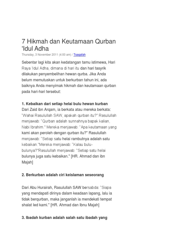 Fadhilah Qurban Kumpulan Ilmu Dan Pengetahuan Penting