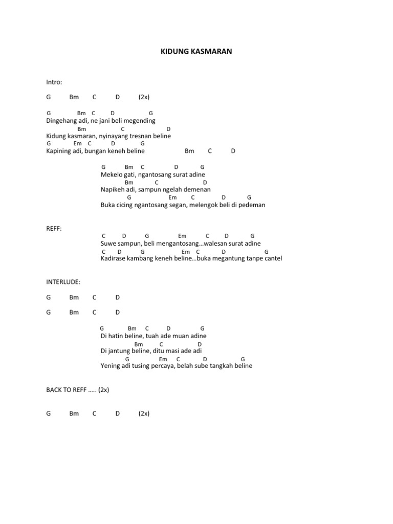Chord Lagu Bali Chord Harmonia Kembali Wattpad
