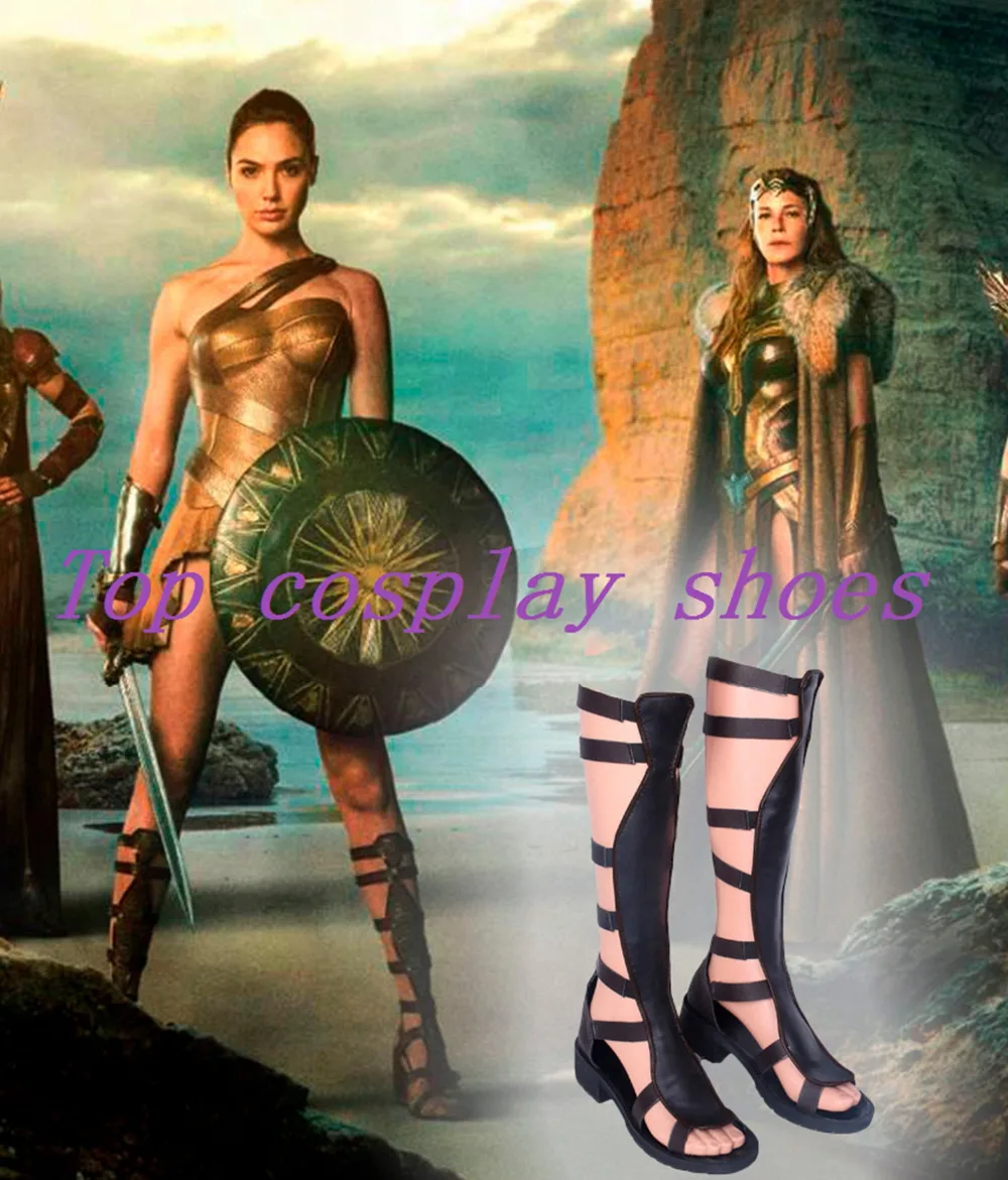 Details About The Movie Wonder Woman Diana Prince Cosplay Shoes Black Boots