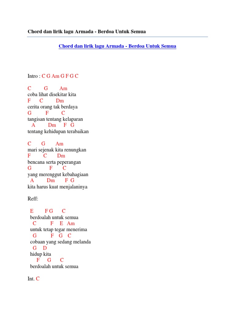 Chord Dan Lirik Lagu Armada Berdoa Untuk Semua