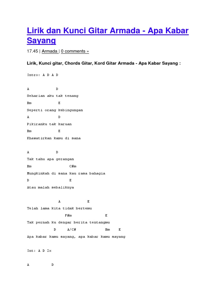 Chord Dan Lirik Lagu Armada Apakabar Sayang